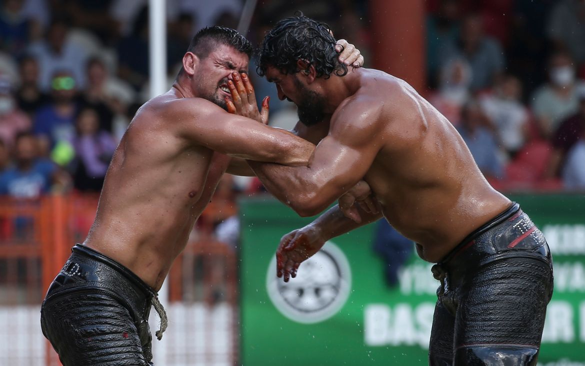Over three days, competitors clad in leather trousers known as “‘kispet” and liberally doused in olive oil struggled to earn the title of Baspehlivani, or chief wrestler, the sport’s equivalent of world champion.