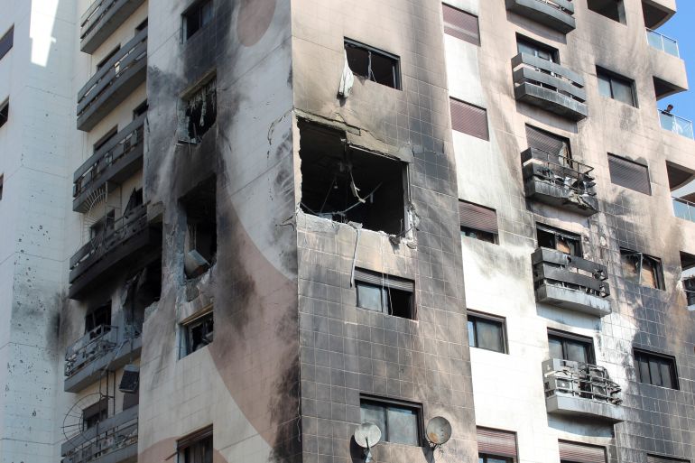 Videos on social media verified by Al Jazeera showed an apartment on fire in a multistorey building. Windows were shattered in nearby buildings and dozens of parked cars were damaged in the area.
